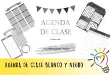 La agenda infantil la puedes encontrar en su versión en blanco y negro, ideal para una impresión más económica y para dar lugar a que los niños la puedan personalizar con los colores que les gusten.
