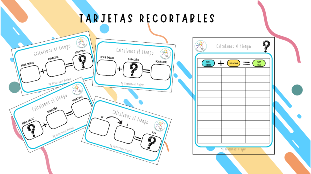 Son muy fáciles de utilizar, simplemente escribe en los recuadros vacíos los datos para resolver el problema dado. Descarga las tarjetas de cálculo de tiempo